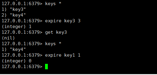 此处设置过期时间,必须对一个存在的key进行设置,如果设置成功返回1,设置失败返回0。
