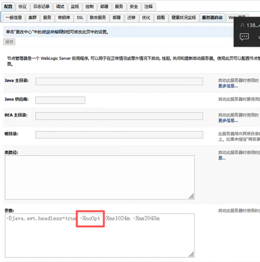 细心检查之后,发现是启动服务器的参数里没有加载上-XnoOpt参数,于是手动去WEB上的启动参数加了之后问题解决