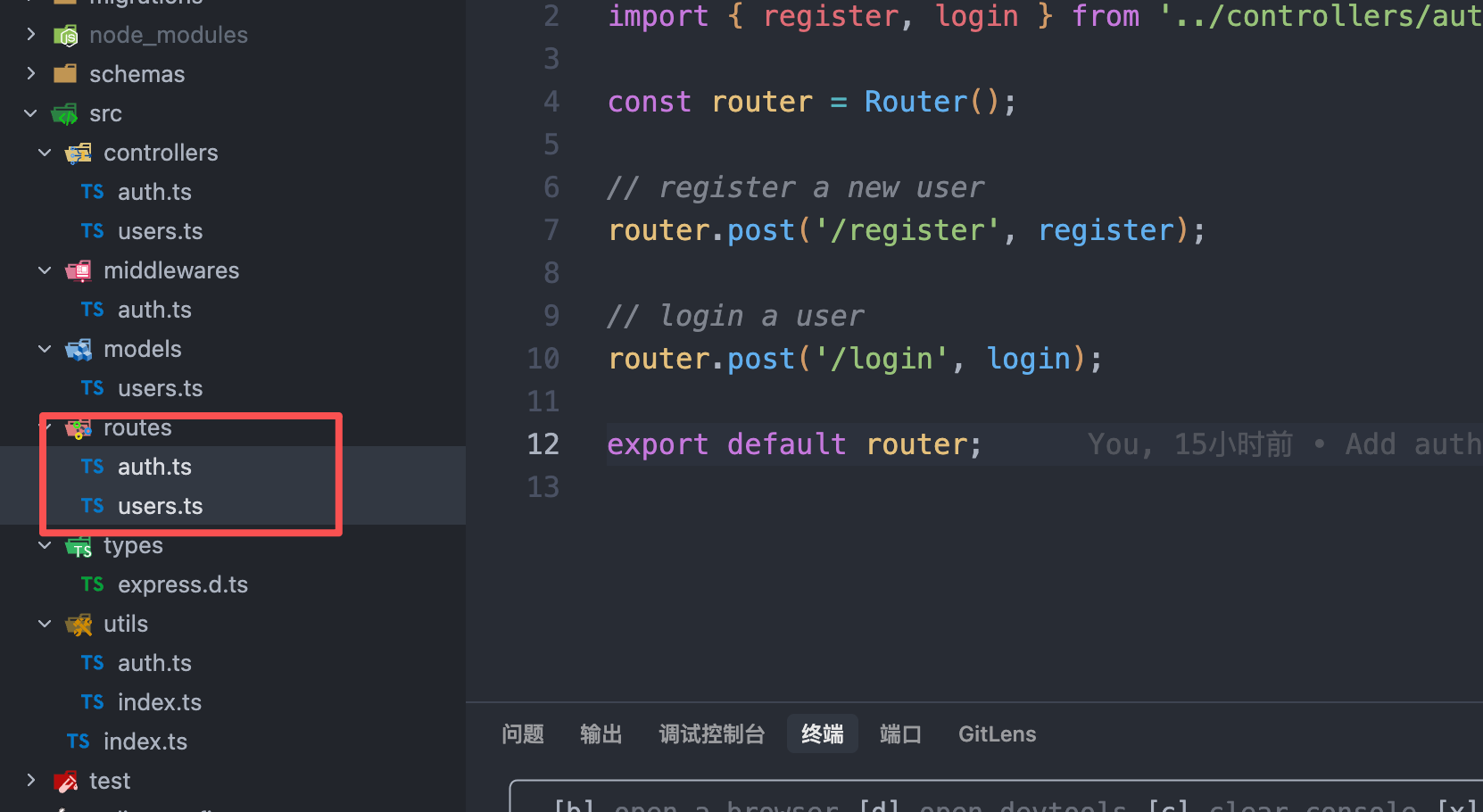将路由分开为注册登录和其他的路由文件: