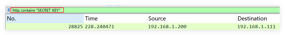 打开pcap流量包,使用**http contains "SECRET_KEY"**命令,过滤出http数据包,并且包含我们想要的SECRET_KEY字符