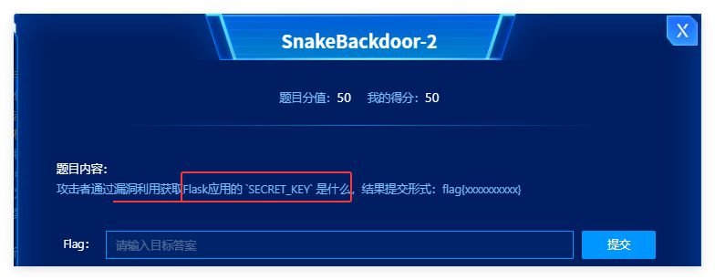 在 Flask 应用中,SECRET_KEY 是用于签名 Session 的核心密钥。如果攻击者利用漏洞(通常是 SSTI)读取了 Flask 的全局配置对象 config,就能拿到这个密钥。