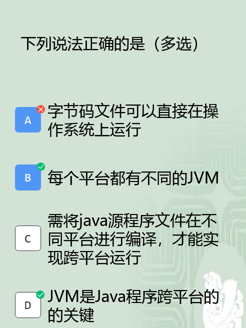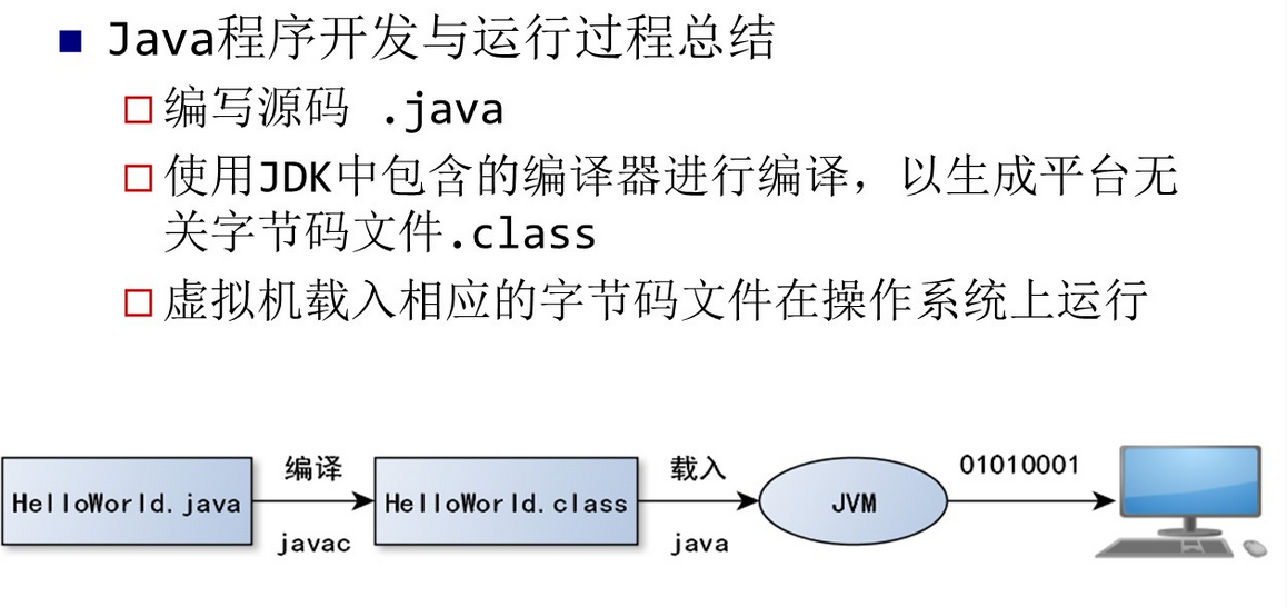 Java 编译生成的 .class 文件不直接由操作系统运行,而是由 JVM 载入并执行,从而实现"一次编译,处处运行"。