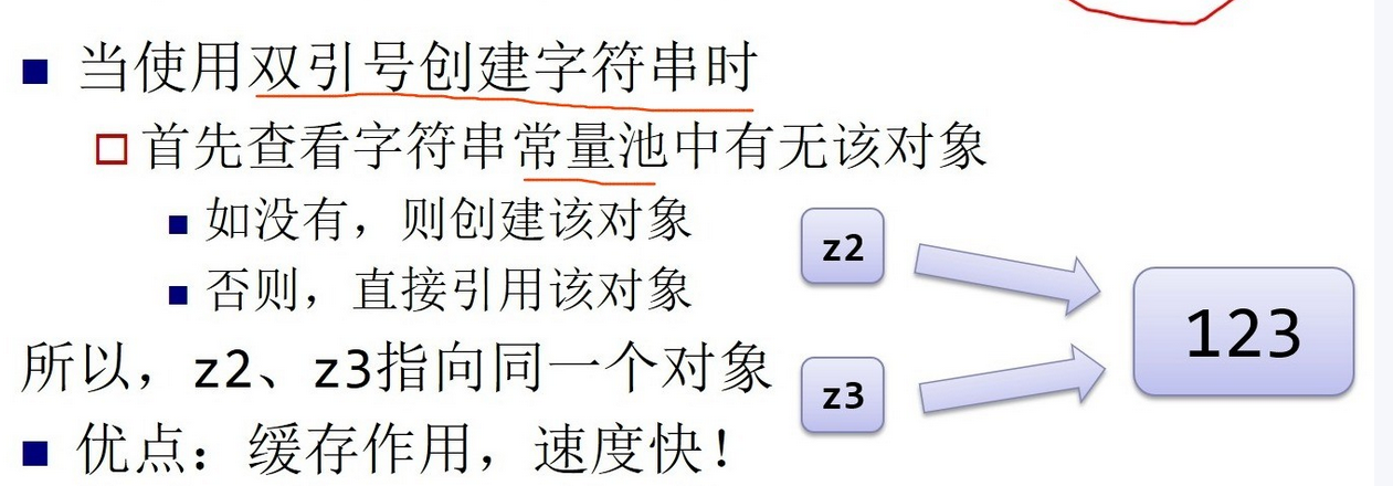 String x = "abc";→x存放的是指向字符串对象的引用 - 可赋值为