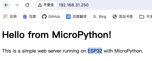浏览器访问 ESP32 的 IP,即可看到网页内容。