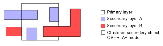输出图层上的版图对象,是主输入图层上版图对象的子集。也就是说,主输入图层上的部分对象,可能会根据运算中指定的约束条件,被排除在输出图层之外。当属性计算涉及多个输入图层时,该运算会根据指定的关键字,将主输入图层上的对象与次要输入图层上的对象进行聚类关联。
