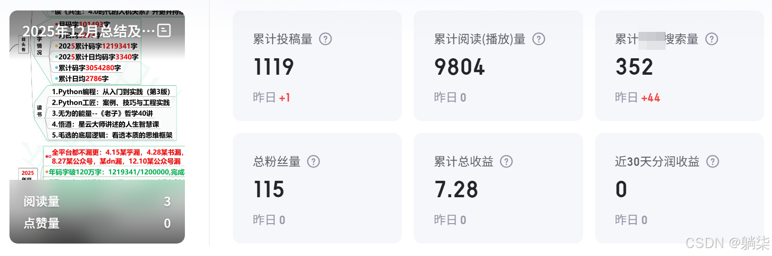 截至2025年底日更坚持了1096天
