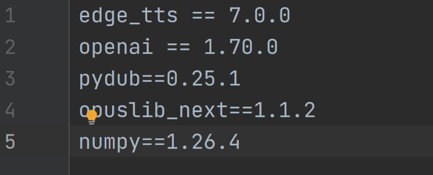 3、添加 opus 编解码的依赖到 requirements.txt