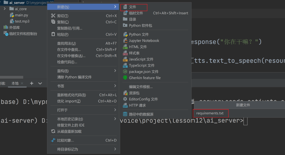 -记录依赖:把项目需要的所有 Python 库(比如处理音频的 pydub、numpy 等)及其版本号写在这个文件里,明确项目的依赖清单。