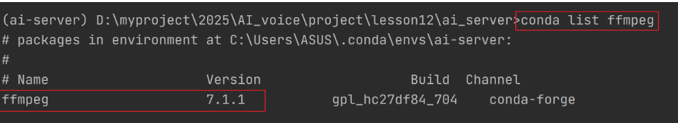 conda install conda-forge::ffmpeg -y #把 MP3/WAV 转成 PCM 格式用的C语言写的