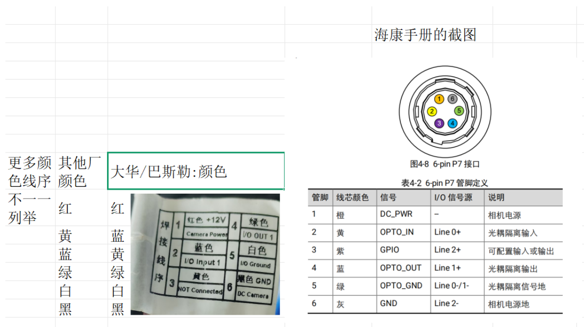 拿到线材:先看线序和颜色是不是海康和官方给的表格一样; 如果一样按照颜色说事没问题;