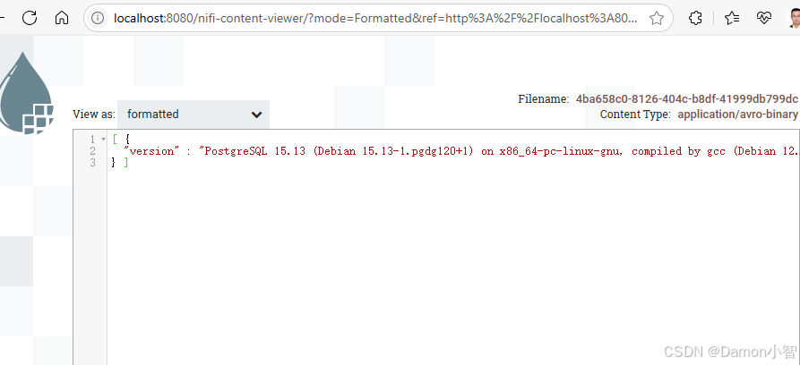 输出内容如下,成功输出了版本号,说明 NiFi 成功连接到了 PostgreSQL。