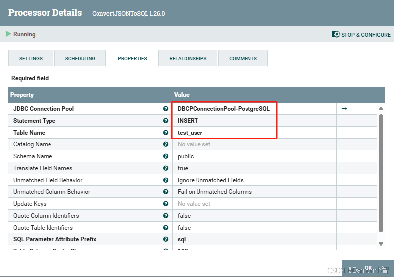 - DBCP Connection Pooling Service:选择你刚启用的 PostgreSQL 连接池(比如我刚新建的 DBCPConnectionPool)