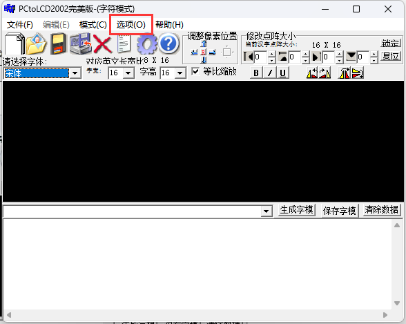 按照如下字模选项进行配置