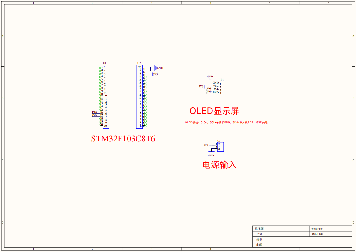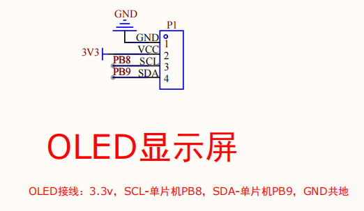 1.OLED接线:3.3v,SCL-单片机PB8,SDA-单片机PB9