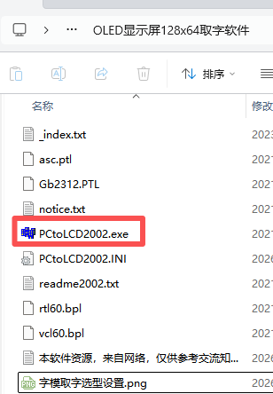 字模取字工具可在网络获取。或者搜索作者的微信公众号"阿齐Archie",工具下载栏的开发工具选项,自行下载获取"OLED显示屏128x64取字软件"压缩包。(本软件工具,来自网络,仅供参考交流知识学习用途,无其他用途)