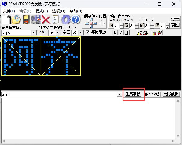 以上即可完成"阿齐"字模数据的获取