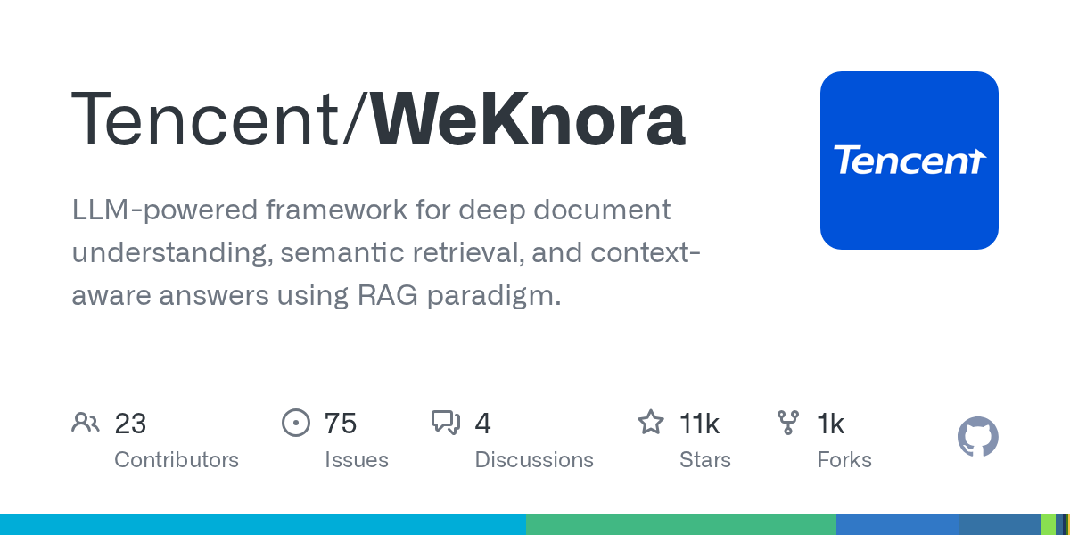 - 💡 推荐语: 腾讯开源WeKnora,一个基于RAG和大语言模型的智能文档理解框架,能深度解析文档语义并精准检索,帮助用户快速获取关键信息。