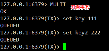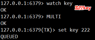 每次添加⼀个操作, 都会提⽰ "QUEUED", 说明命令已经进⼊客⼾端的队列了,但是并未被执行。