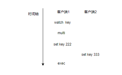 由于客户端中,是执行exec执行了,才会真正执行 set key 222,这个操作变成了实际上更晚执行的操作,最终值就是 222。