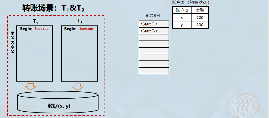事务读写流程 (以银行转账 x→yx \to yx→y 为例):