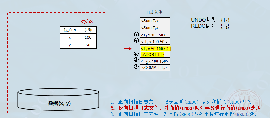 ACTIVE-LIST暂时全部放入UNDO-LIST队列。 REDO-LIST队列暂为空。