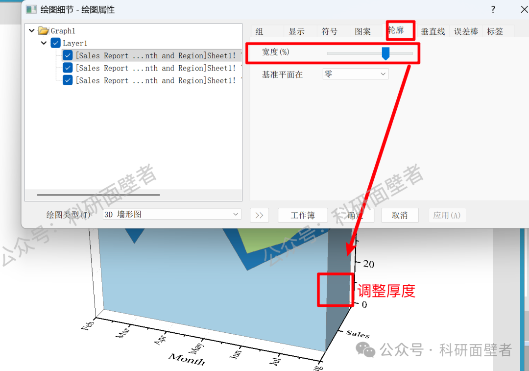 轮廓菜单,调整宽度可以改变墙形图的厚度: