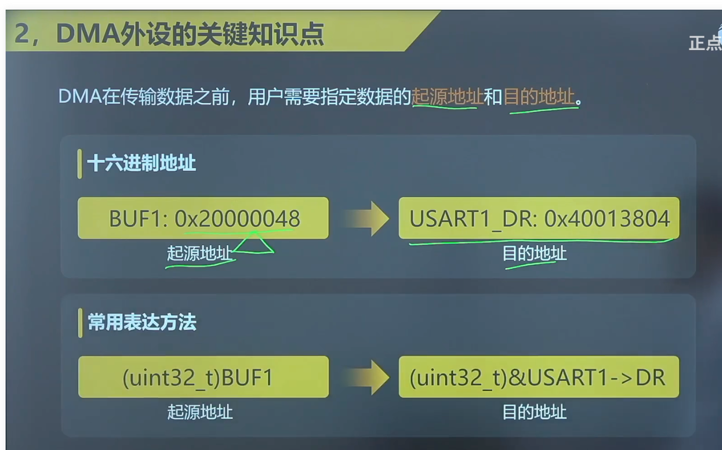 HAL_DMA_Start(&g_dma_handle, (uint32_t)buf_a, (uint32_t)&USART1->DR, 5); //注意USART前面有&去地址符