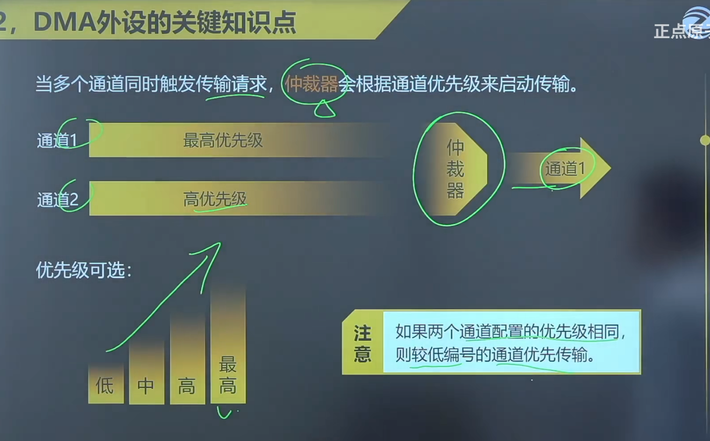 USART1_TX、TIM1_CH4、SPI/I2S2_RX等),这些外设请求是 "逻辑或" 的关系 ------同一时间只能有一个外设占用通道 4。 -