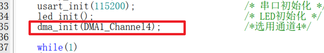 dma_init(DMA1_Channel4); /*选用通道4*/