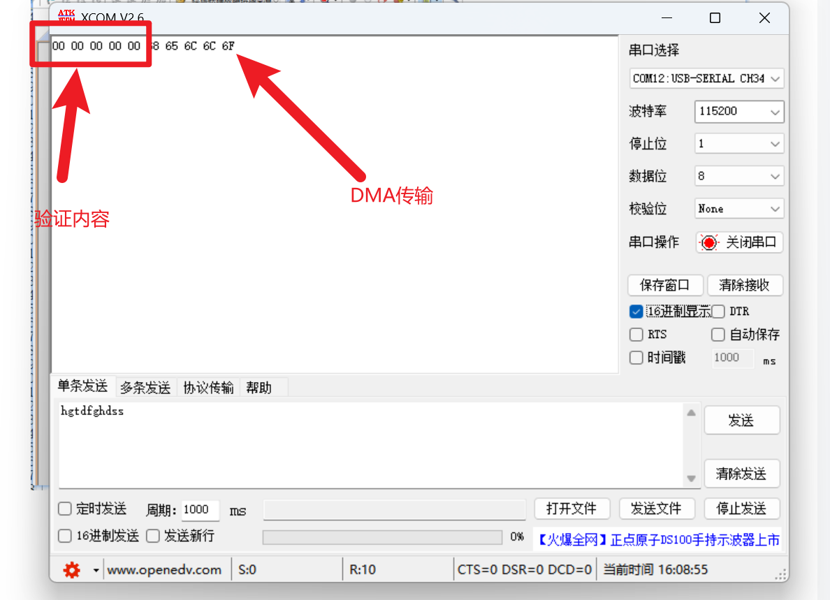 | 硬件操作 | 使能DMA和串口DMA功能 | 禁用DMA和串口DMA功能 |
