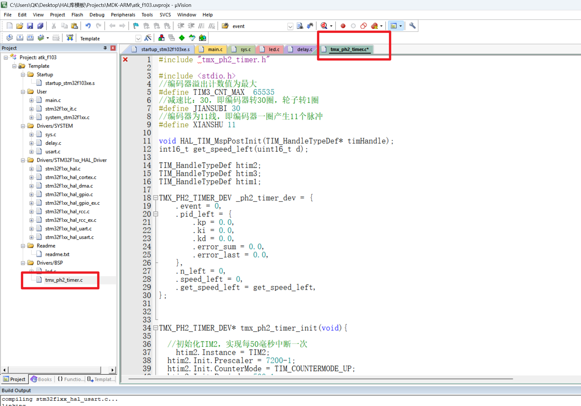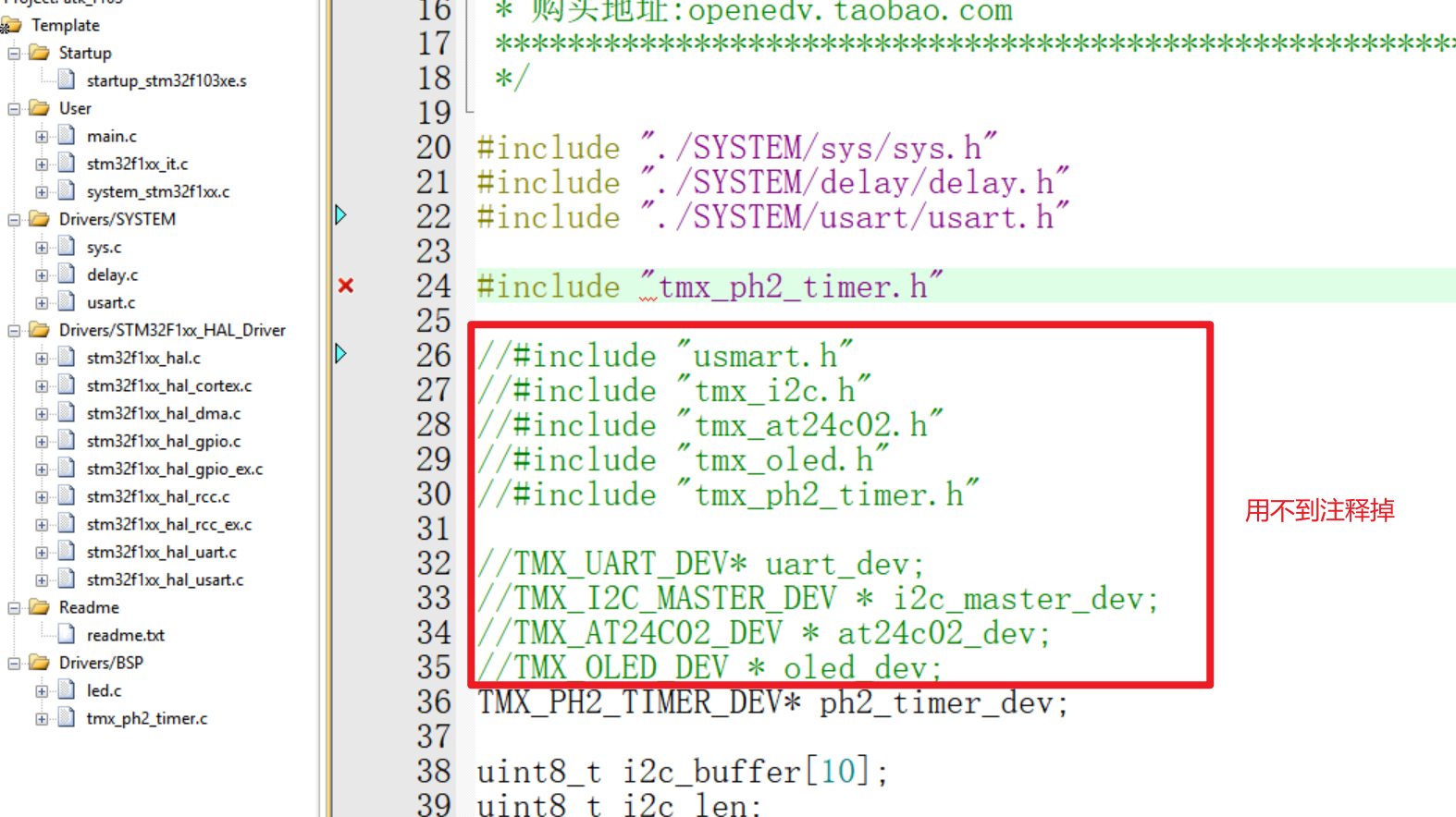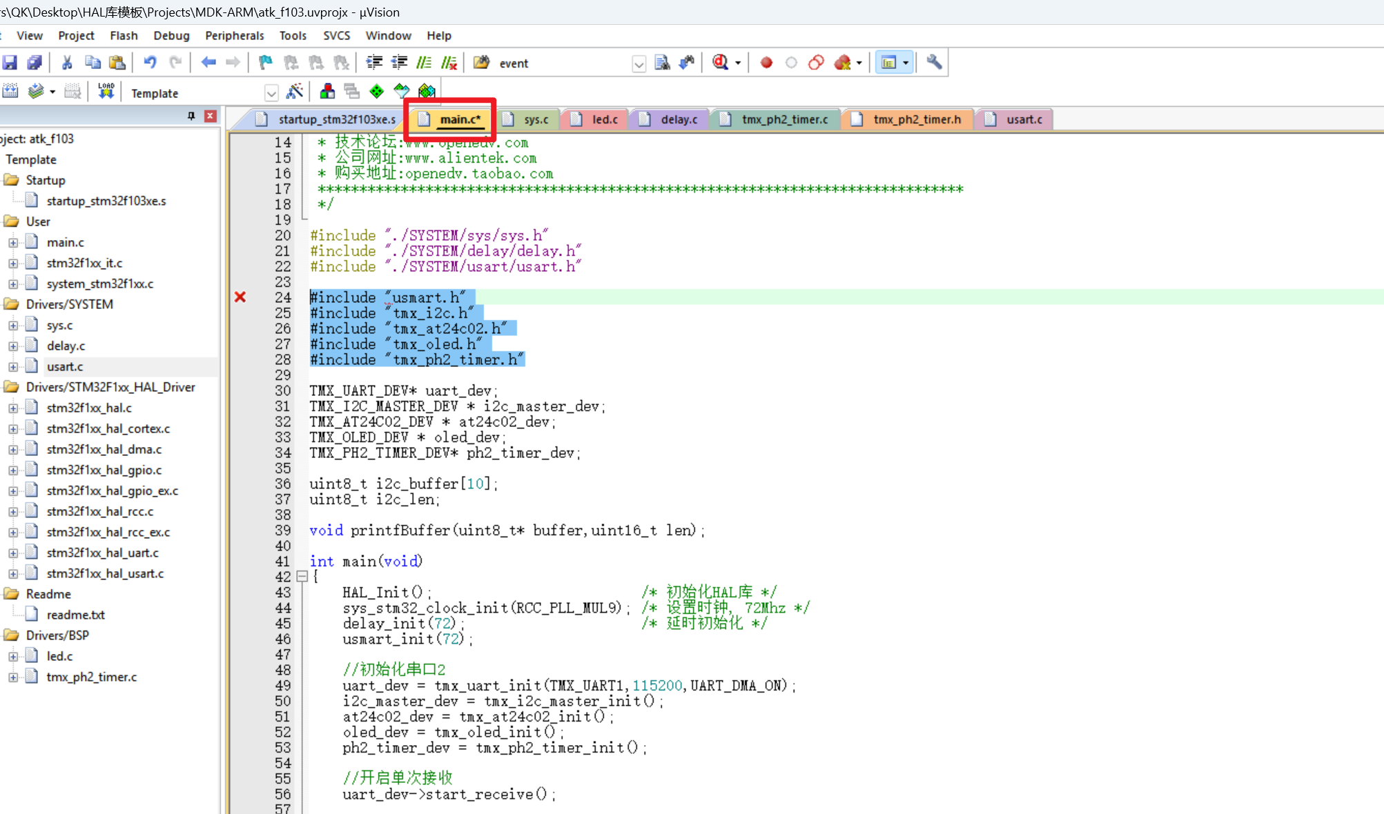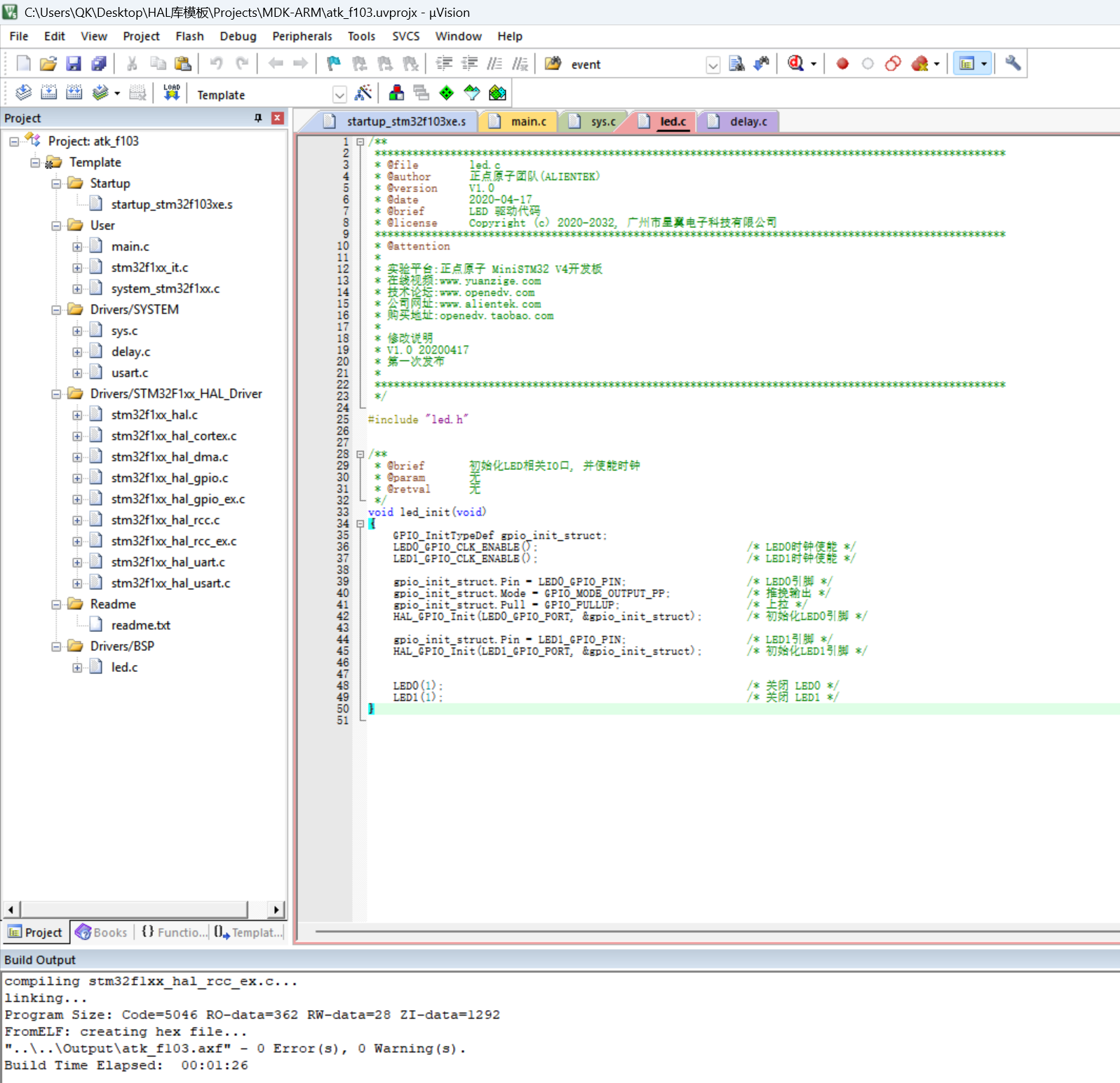 注释:本次使用的工程模板为正点原子提供的工程模板