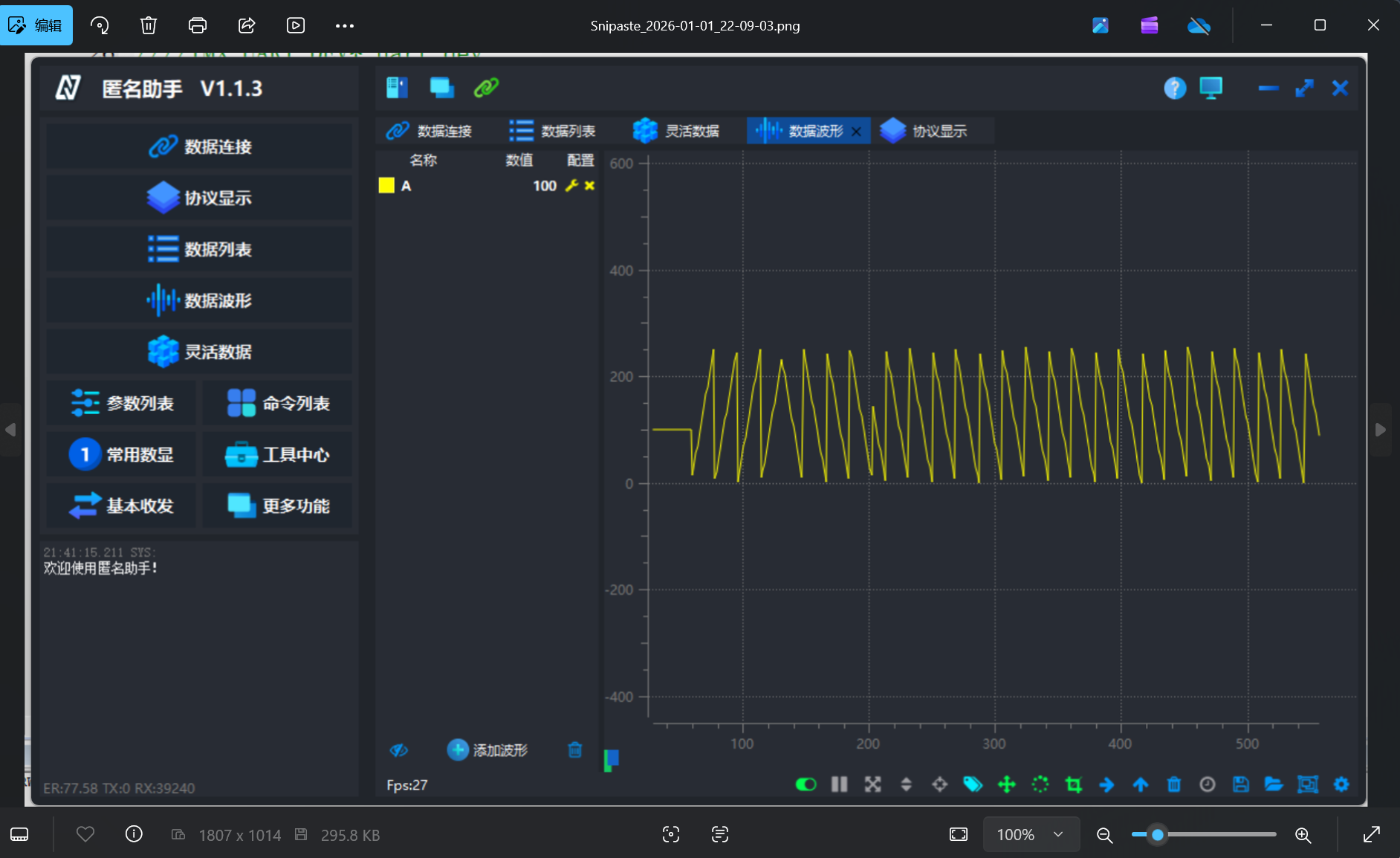 将程序烧录如板子里面,在匿名助手中验证