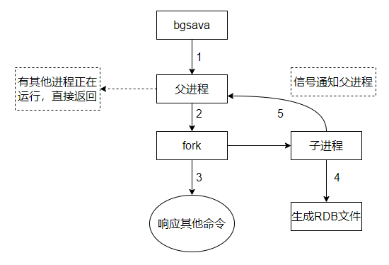 1、判断目前是否有多个客户端执行bgsava,如有多个就立即返回。因为都是保存的同一份数据,只执行一个bgsava 就行了