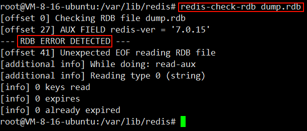 检查rdb文件,执行命令 redis-check-rdb dump.rdb