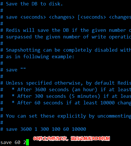 自动触发rdb的条件,也是在 目录 /etc/redis下的redis.conf配置文件中进行设置的。