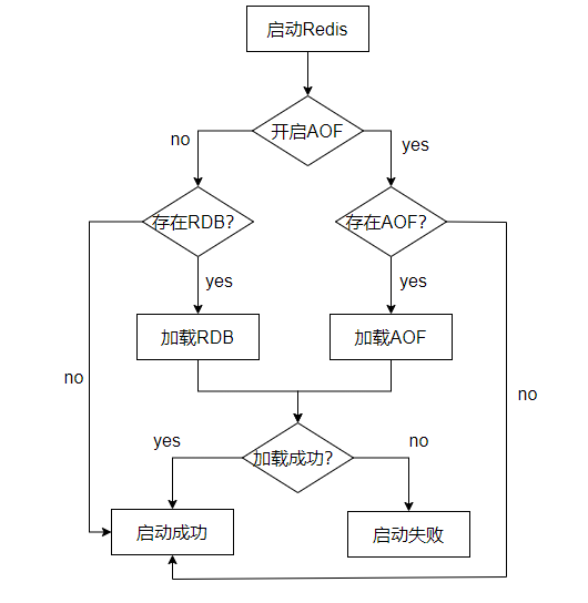 当Redis上同时存在的rdb快照和aof文件的时候,是以aof文件为主(aof中包含的数据比rdb更全),下面是启动时数据恢复的一个流程。