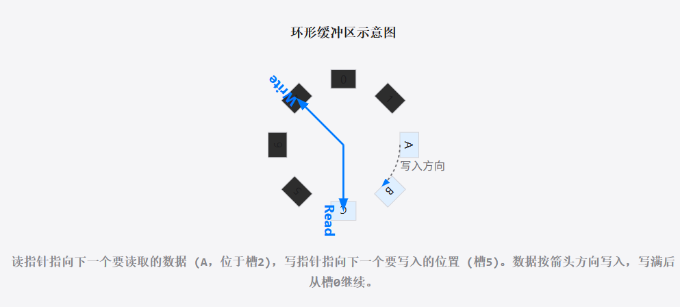 "货架" (缓冲区): 一个 `uint8_t` 类型的数组,用于存放串口接收到的每一个字节(货物)。UART_RX_BUFFER_SIZE (值为 128) 定义了货架的大小,防止货物堆积如山导致溢出。