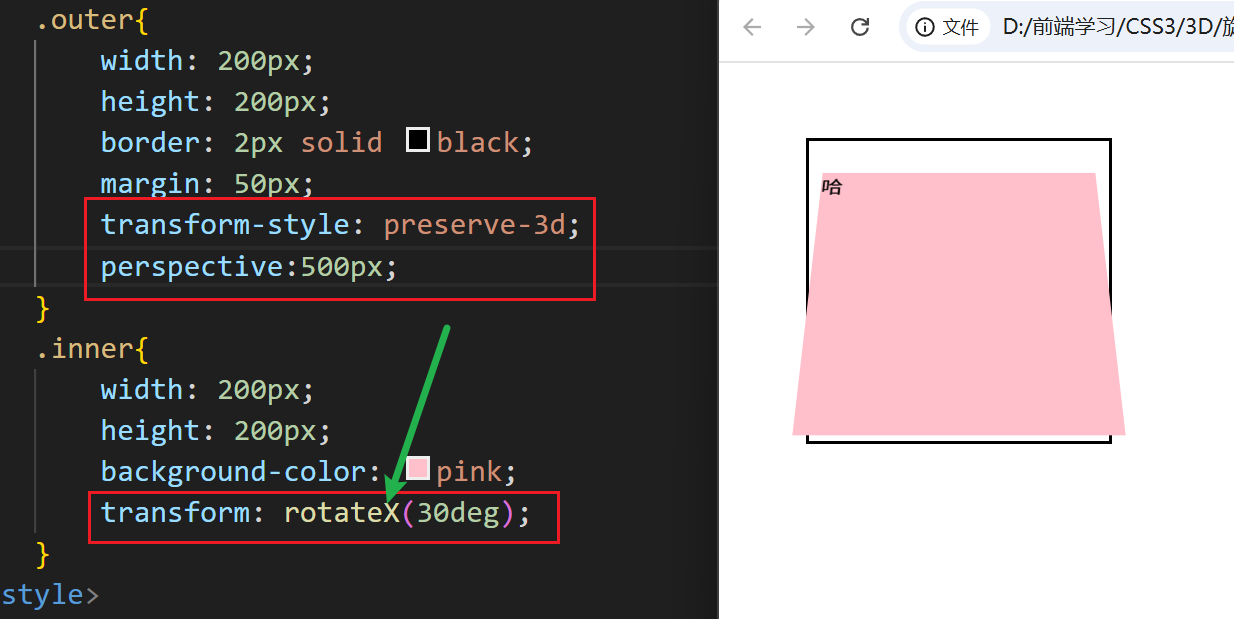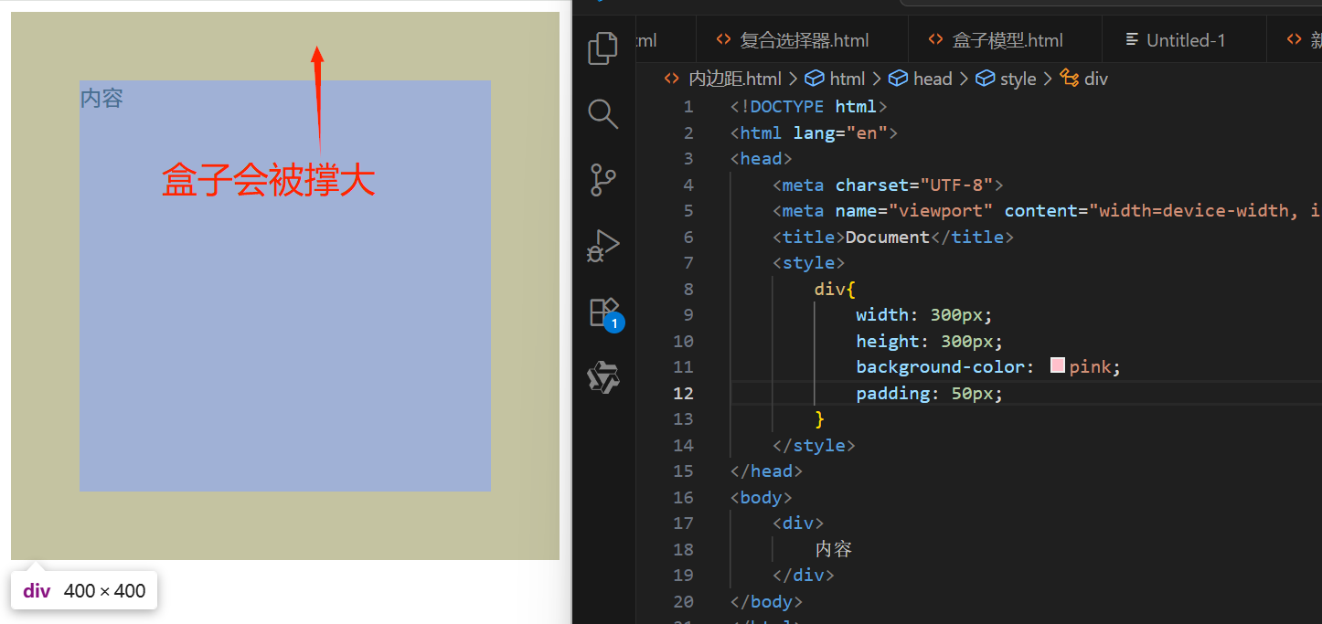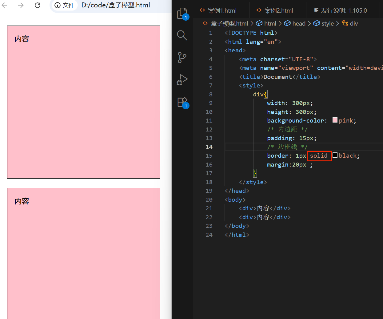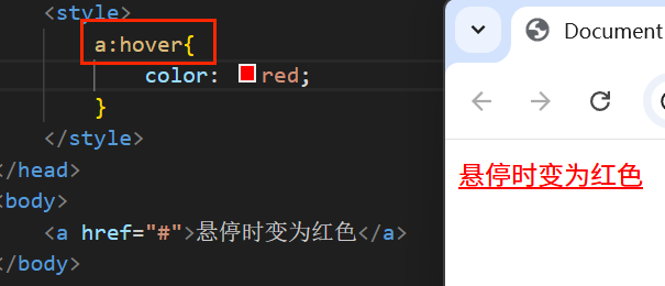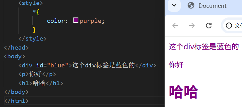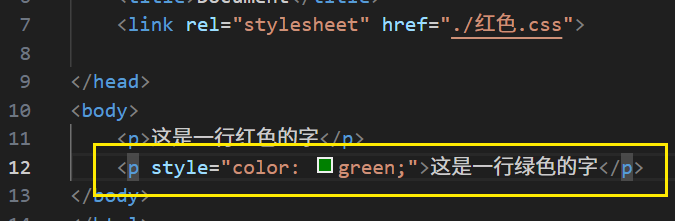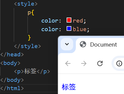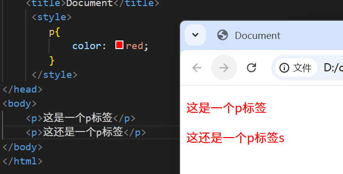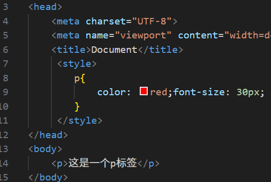 写在style标签中,style标签一般写在head标签中,title标签下面**(内嵌式)**