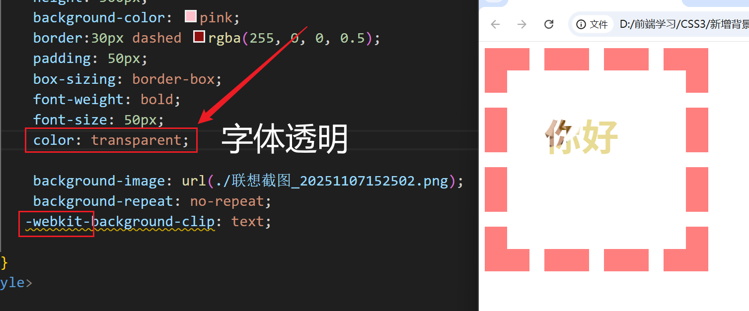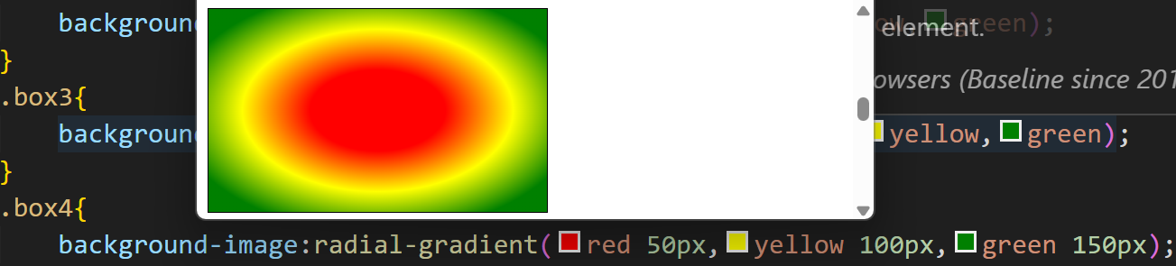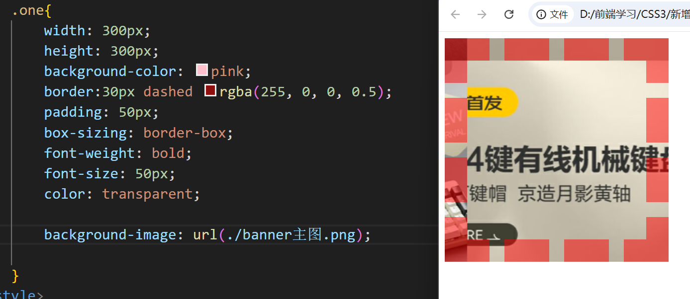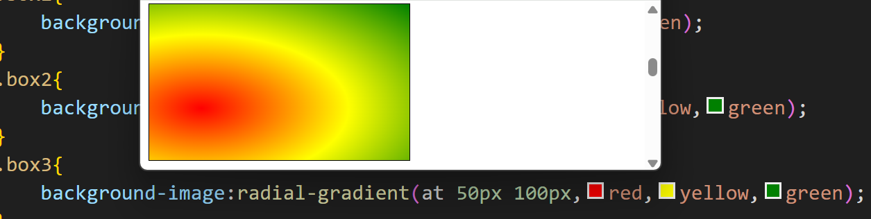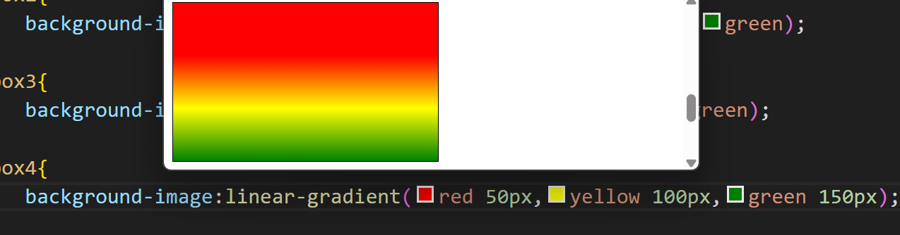 | rgba表示法 | 红绿蓝三原色+a表示透明度,取值范围是0~1 | rgba(255,255,0,0.5) |
