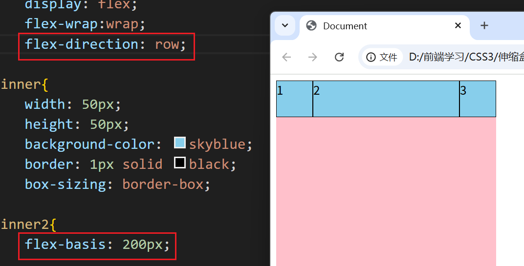 - 数字的含义:将所有设置flex-grow的数值相加,每个数值是该项目所占的剩余空间的比例
