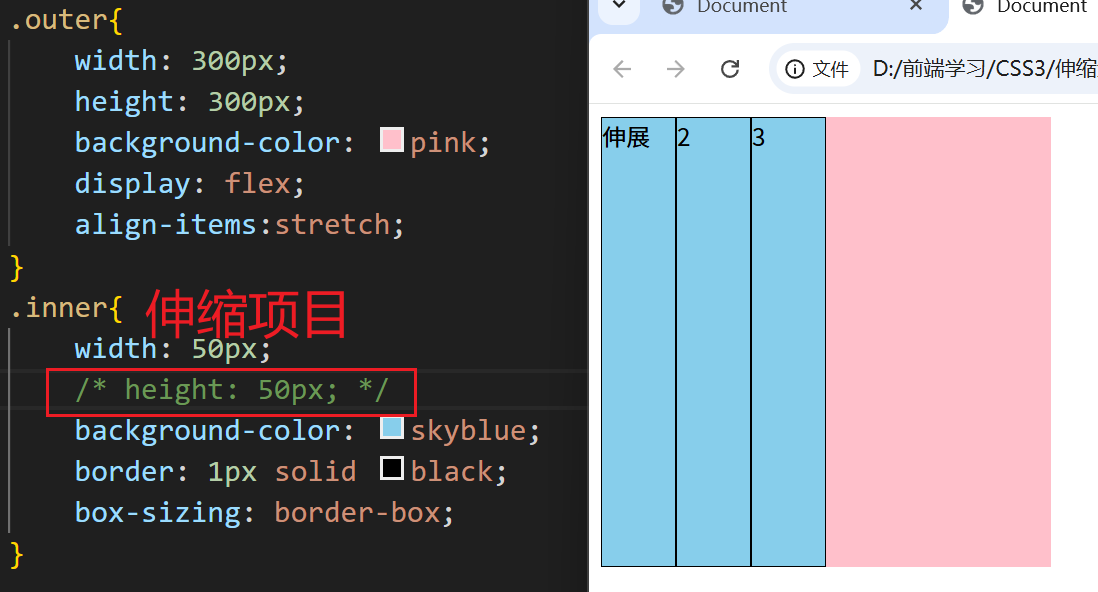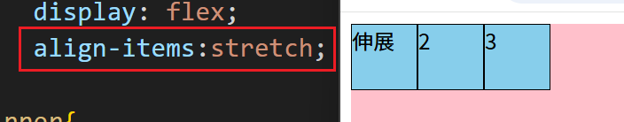 | stretch | 若伸缩项目未设置高度,将占满容器的整个高度,平分(默认值) |