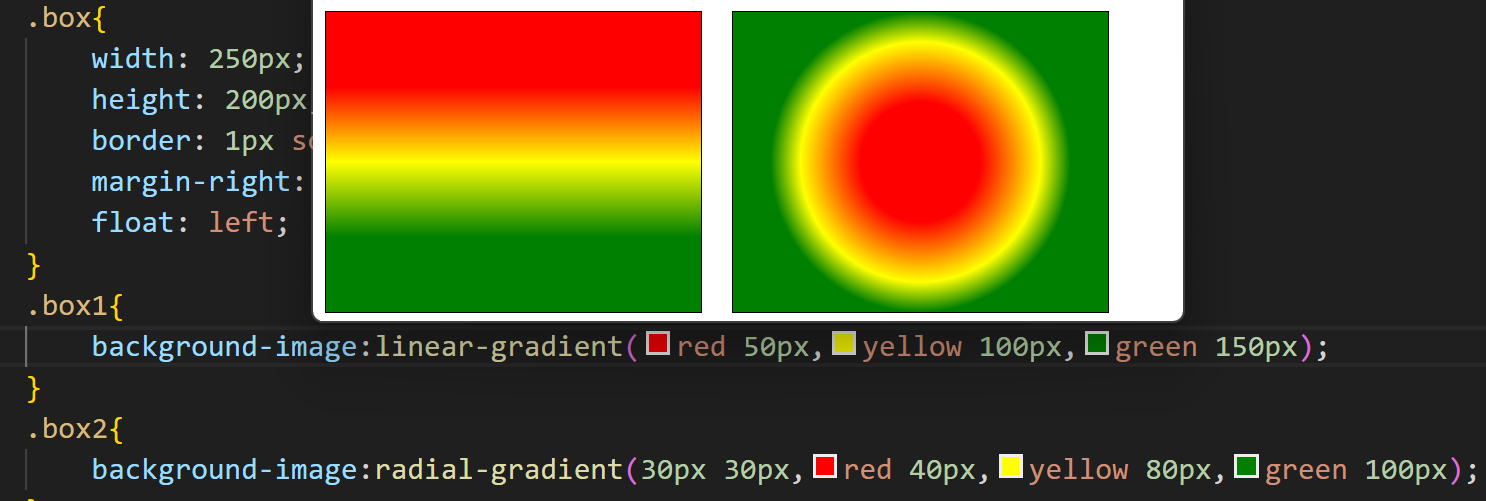 | rgb表示法 | 红绿蓝三原色,每项取值范围:0~255 | rgb(0,255,0) |