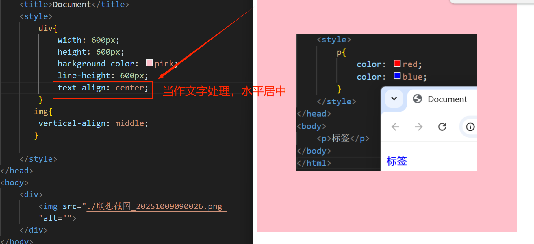 所谓容器(可以说是参照物),即能装在内容的载体,例如块级标签,虽然text-aline的作用对象是行内元素,但该行内元素需要存在于一个块级标签内部,因此,需要给块级(父)元素设置text-aline,作用对象是父级标签内部的行内元素,但不可以直接给行内元素添加text-aline属性