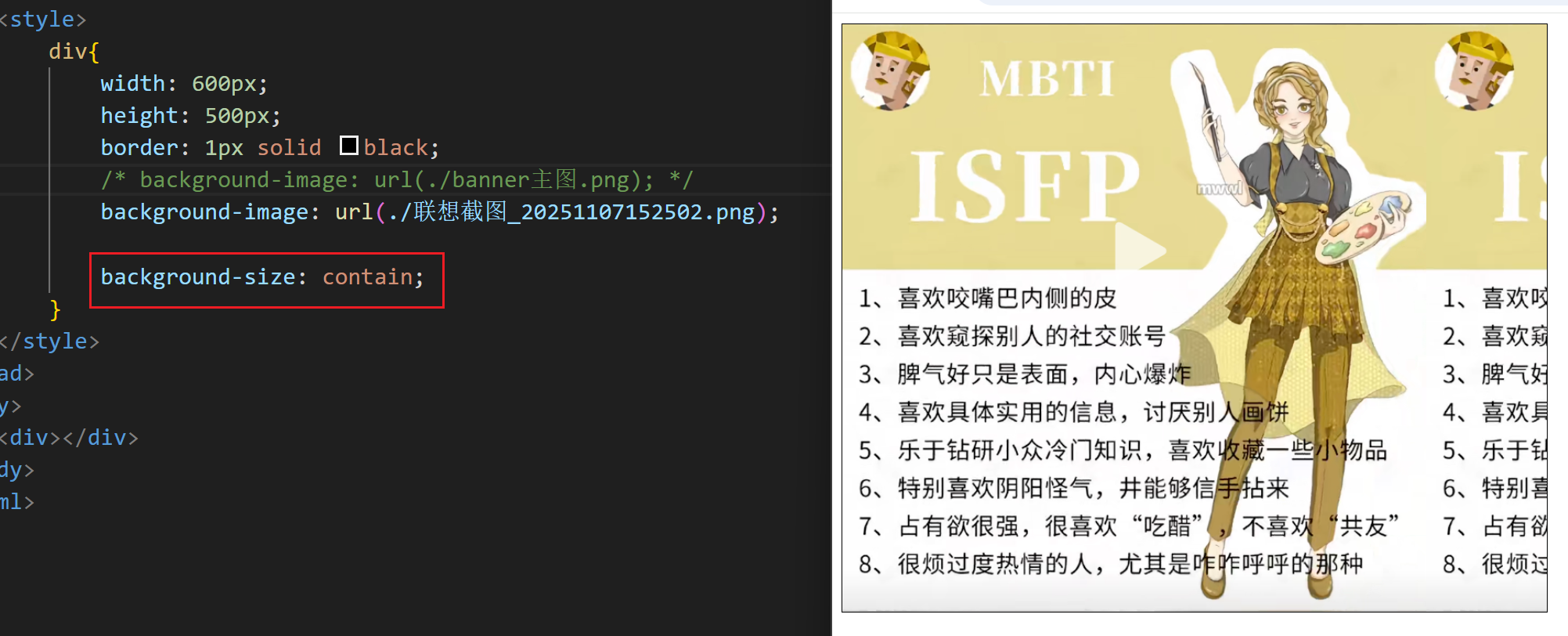 | min-heigh | 当高大于等于该像素值时显示效果 |