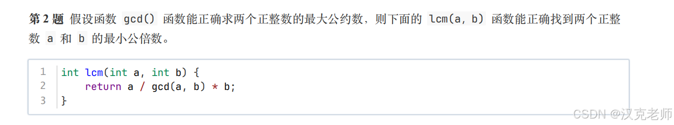 lcm(a,b) = a / gcd(a,b) * b能正确求最小公倍数。