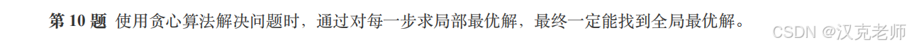 贪心算法每步最优,一定得到全局最优。