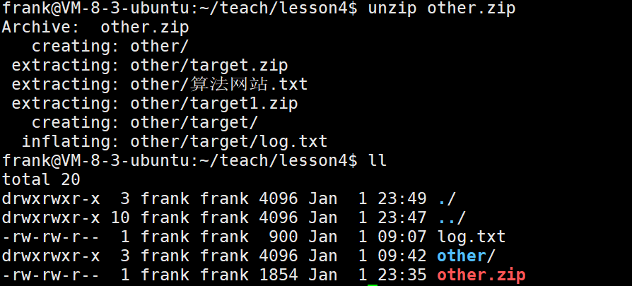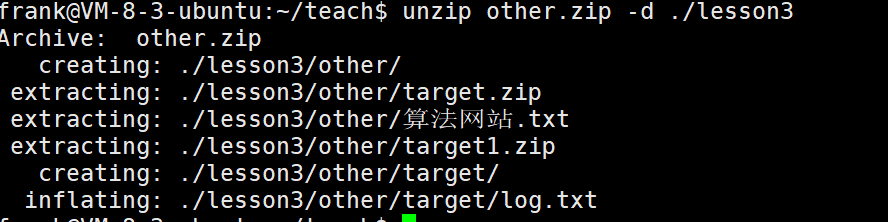 解压到lesson3目录里面:unzip other.zip -d ./lesson3