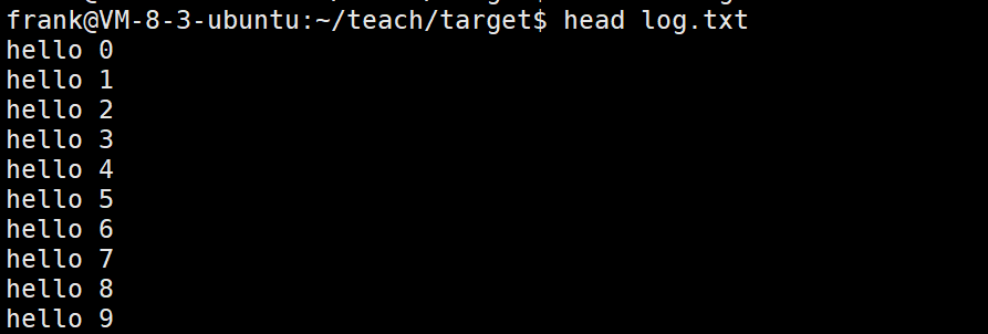 功能: head⽤来显⽰档案的开头⾄标准输出中,默认head命令打印其相应⽂件的开头10⾏。