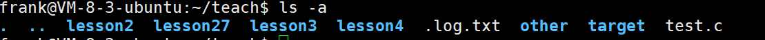 ls -a :是列出⽬录下的所有⽂件,包括以.开头的隐含⽂件。