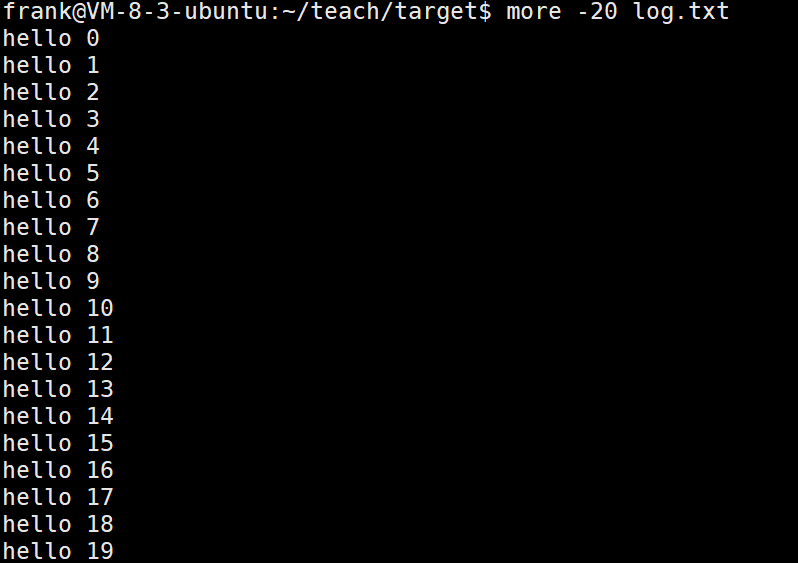 如果只想看前20行就输入 more -20 文件名